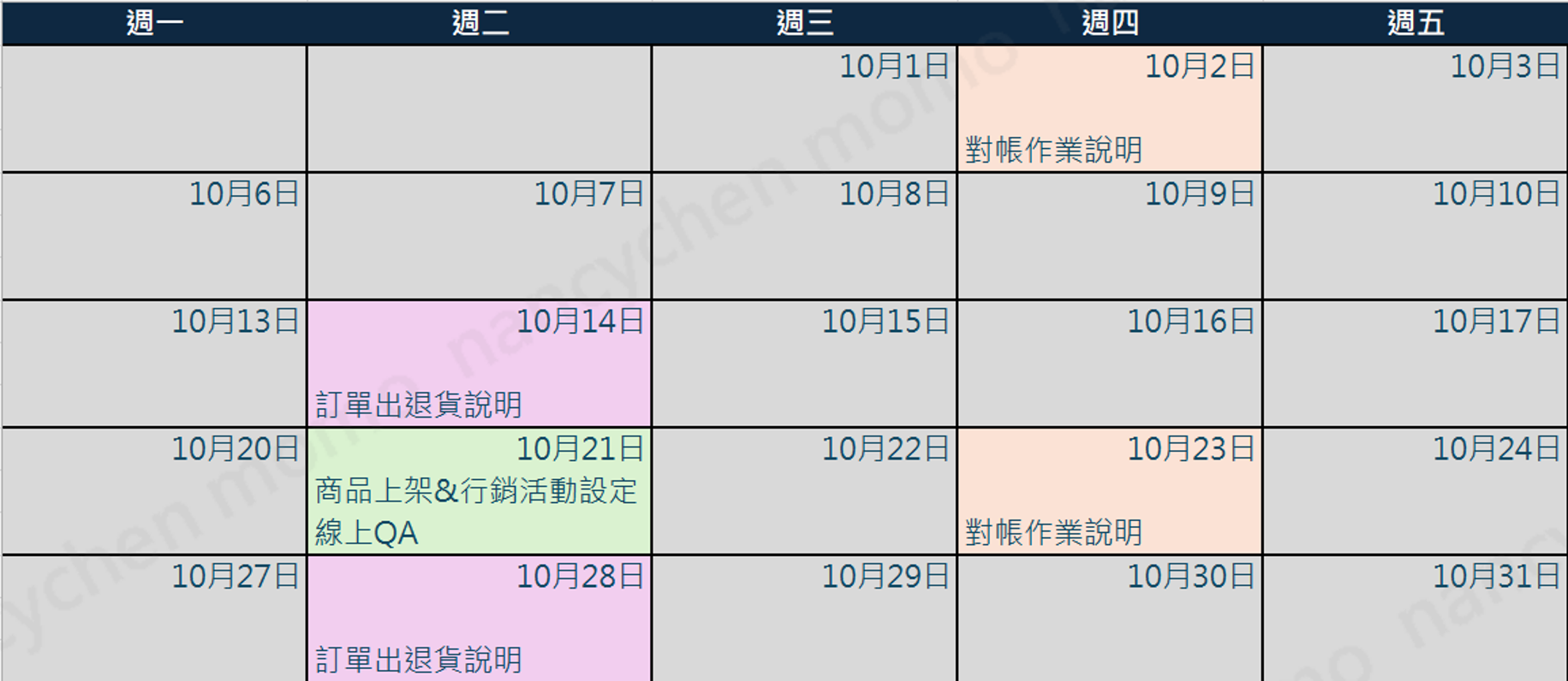 10月課表