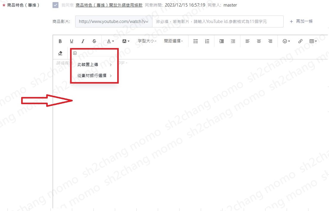 商品名稱第一格品牌名稱欄位會依(網路)品牌設定帶入,若無對應品牌輸入[其他],則將不會帶入任何資料且不可編輯。